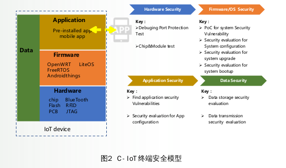 固件安全目标包括固件漏洞验证、账户安全、系统配置安全、系统升级安全等,通过对C-IoT终端固件的信息检测、第三方组件检测,发现与等保2.0相关要求不符合的内容,其主要的方式是通过静态和动态两种方式进行。