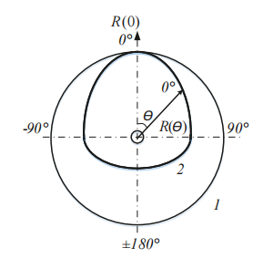 麦克风是将声振动转换为电振动的传感器。窃听者为获取最好的声音效果,可以采用多种类型的窃听麦克风。采用何种麦克风,需要重点考虑麦克风的灵敏度、频率响应、方向特性等性能。灵敏度是麦克风输出端的电压与作用在麦克风上的声压之比。频率响应是灵敏度水平与频率的关系。方向特性是麦克风灵敏度与角度的关系,大多数麦克风具有轴向对称性,因此它们的方向性在通过麦克风轴的所有平面中都是相同的。根据方向性特性,麦克风分为全向麦克风和定向麦克风。可以用极坐标来表示麦克风的方向图,如图2所示,图2中曲线1适用于小型麦克风与长波长麦克风(全向麦克风),曲线2适用于麦克风的直径等于声波的长度时。