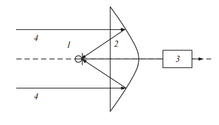 抛物面式麦克风组是带有抛物面反射器的定向麦克风,麦克风反射器被放置在抛物面的焦点处,如图8所示。从抛物面反射镜反射的轴向声波在焦点处相叠加,反射镜的直径越大,可以提供的声压增益越大。当抛物面对准声音方向时,来自其他方向的噪声被放大的程度低于声音被放大的程度,这就相对增强了声音。声音到达轴的角度越大,衰减越强。实际中使用的抛物线形麦克风的镜面直径通常可达几十厘米。